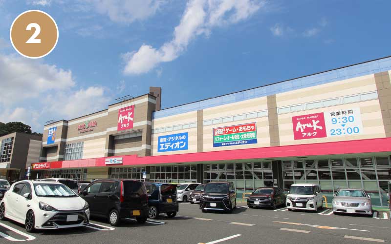 アルク・サンドラッグ・北九州銀行・眼鏡市場・QBハウス・auショップ・エディオン・ダイソー・ケイズ歯科クリニック・しゃぶしゃぶダイニングMK・無添くら寿司・セブン銀行ATMのあるショッピングタウン。隣接してミスタードーナツ・ケンタッキーフライドチキン・はるやま等もあります。