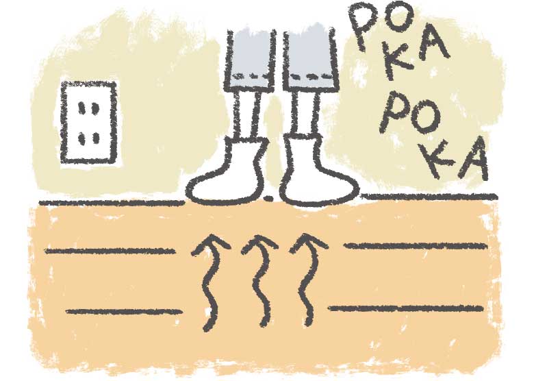 床暖房は床面を約26~30℃に保ち、足元からじんわりと暖まります。理想的な環境と言われる「頭寒足熱」を実現します。